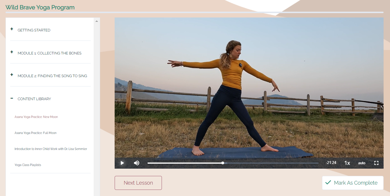 The Signature Wild Brave Yoga Program is a 14-week transformation that includes week by week yoga practices, assignments, coaching calls, and more to help you become more aligned and embodied, design a yoga practice that meets your needs, and reclaim your wild spirit.